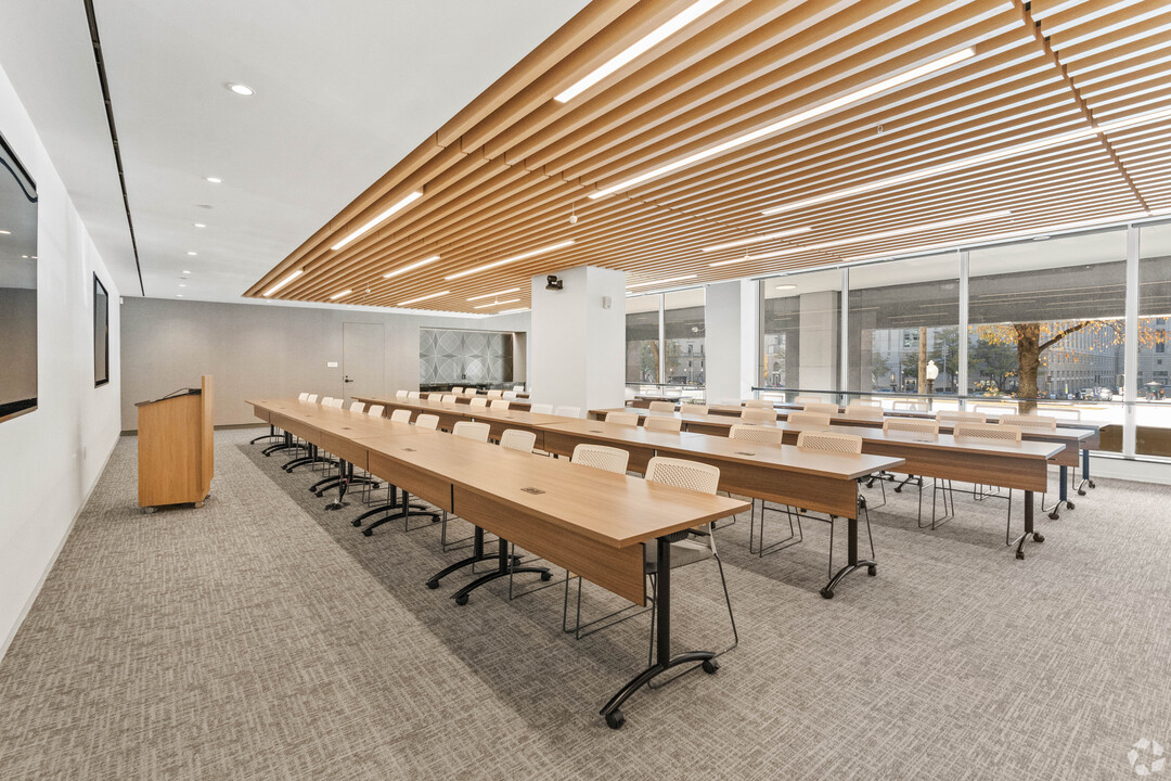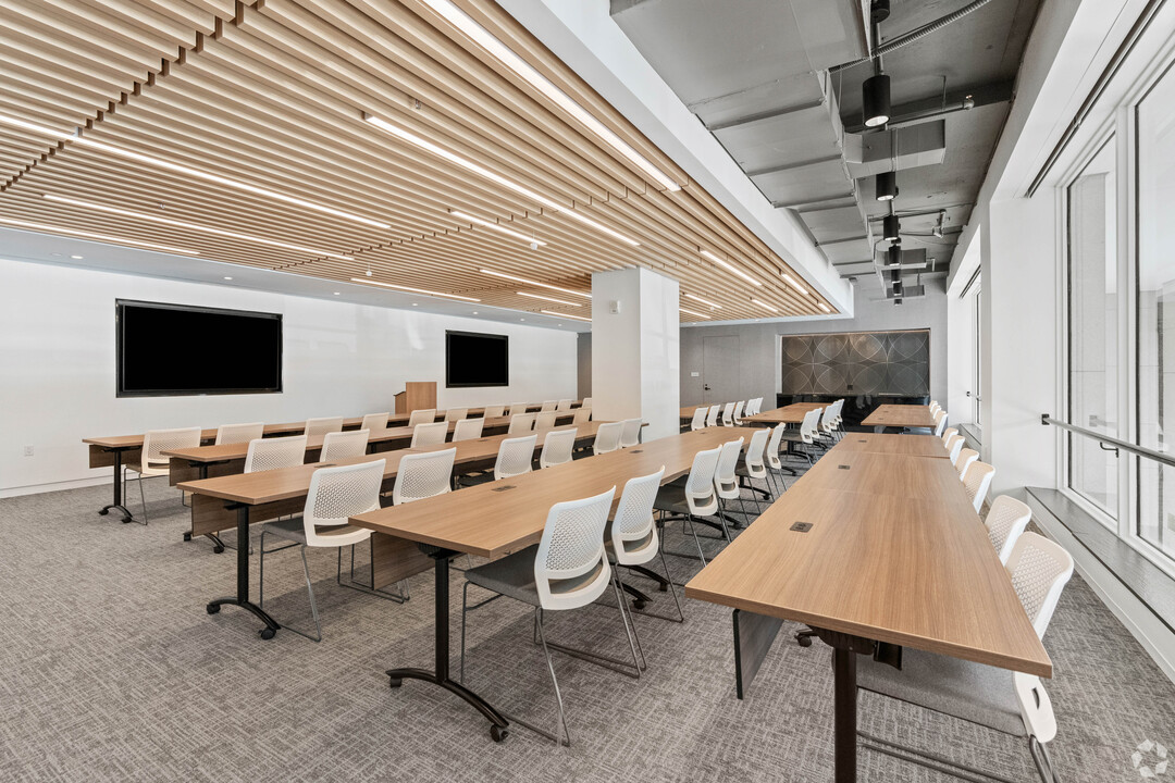 Experience a modern, focused conferencing facility with a flexible layout designed for seamless gatherings. Host up to 75 seated or 100 standing guests in a contemporary setting that balances focus and comfort, all in a convenient, easy-to-reach location.