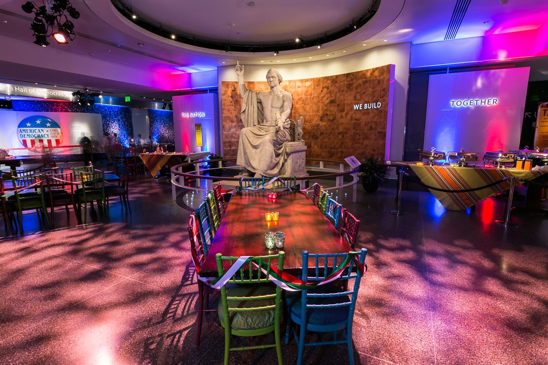 In season, the Museum's 5th floor rooftop terrace with fabulous views of the National Mall is also available for daytime events, evening events, and wedding receptions for 300 guests. The museum can be rented for events hosting anywhere from 10 to 3,500 guests in a variety of newly renovated event spaces chosen to fit your group. A team of professional events specialists is available to ensure an enjoyable and meaningful experience for both host and guests. To learn more about renting the National Museum of American History, please contact us.