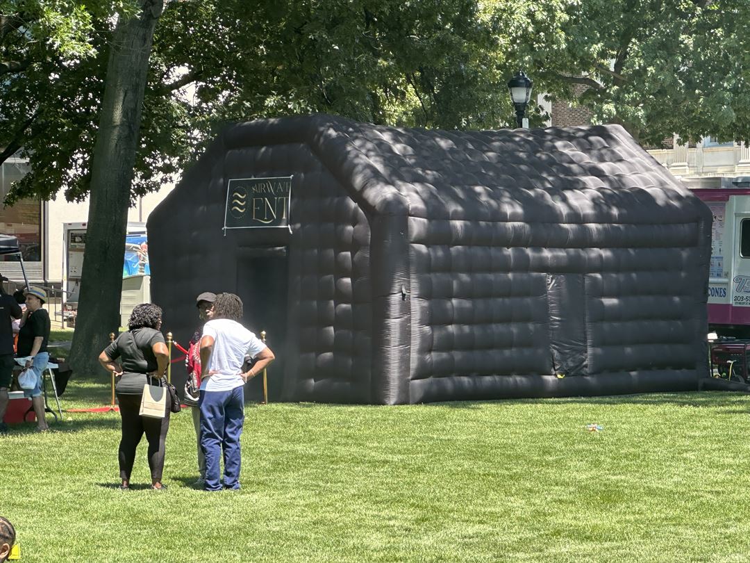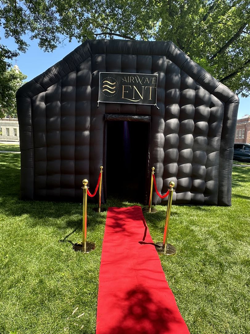 Mobile event space. Inflatable party dome An experience you won't find anywhere else. Our state-of-the-art sound system, strobe lights, and fog machine will transport you to a whole new world, while our red carpet with gold stanchions will make you feel like a VIP.