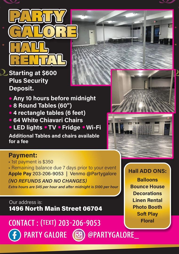 Open space to have events 64 chairs provided Tables are provided as well Round and Rectangle