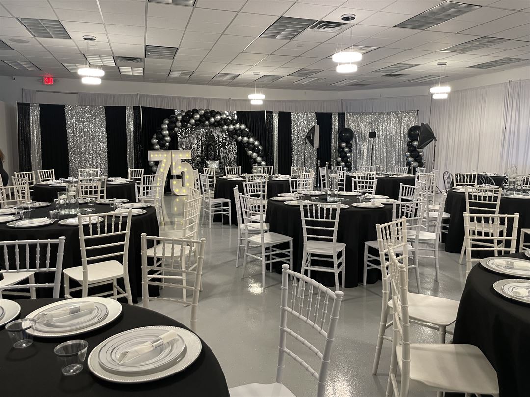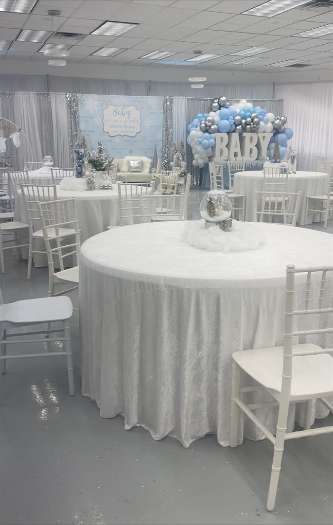 Welcome to The Blush, where everyone leaves "blushing!" Our venue is located in Waterford and has a open concept floor plan with 9 beautiful chandeliers, up lighting, and a custom built bar with 6 barstools, tv, mini fridge, and sink. Free WIFI is included in all of our packages. Our space has table seating for 80 guests plus 6 barstools at the bar. In addition to our space, we offer full décor services and we have a full line of party rentals such as throne chairs, props for themed events, balloon décor, and concession equipment to give you a one-stop shopping experience. Outside catering and other vendors are welcomed.