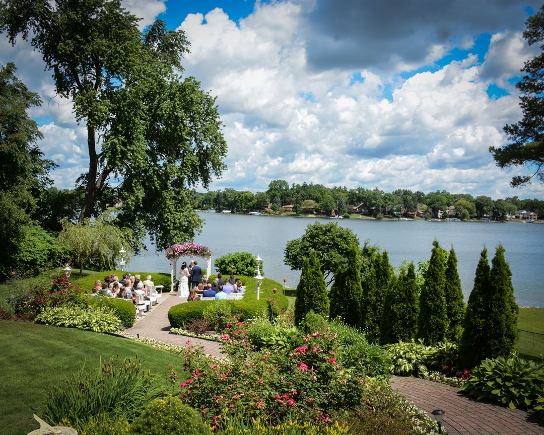 A well known and truly romantic spot for a wedding in Southeast Michigan, Victoria Wedding Chapel is located on Silver Lake in Waterford. Built in 1926, this elegant French Mediterranean villa is an architectural masterpiece. Handcrafted details in both the chapel and garden set Victoria apart from other venues, and create the most breathtaking location for your special day.