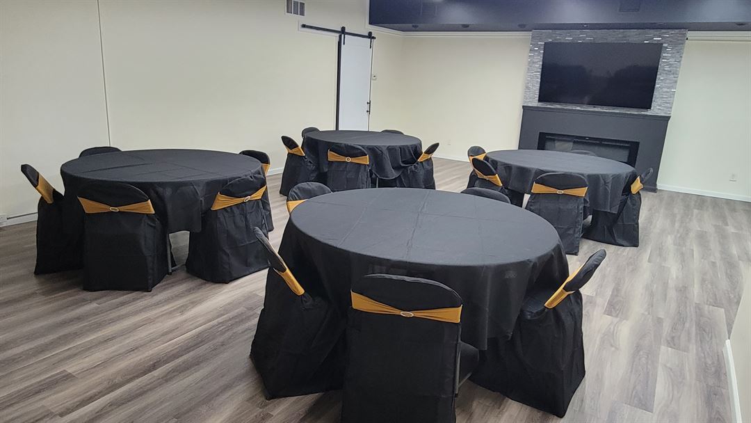 Enjoy 4 full hours of venue rental, complete with elegant table and chair covers (your choice of black or white) and stylish chair sashes (available in silver/gray, gold, light pink, and baby blue). Perfect for making your event shine!