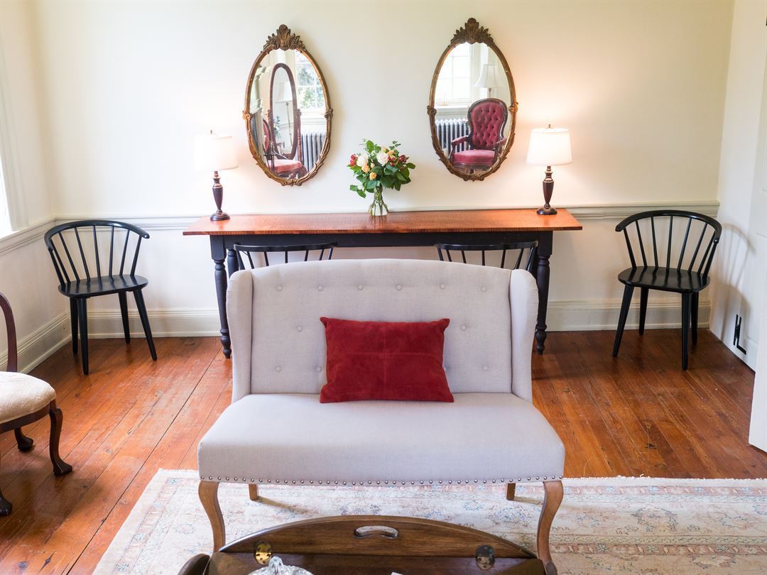 The outdoor patio is tented April – December (it seats up to 65 guests). Other amenities include air conditioning, free parking & WiFi plus a private, recently renovated sitting room for the wedding party upstairs. Duportail House is handicapped accessible and less than one mile to the nearest overnight accommodations. Only one event is scheduled per day at the Duportail.