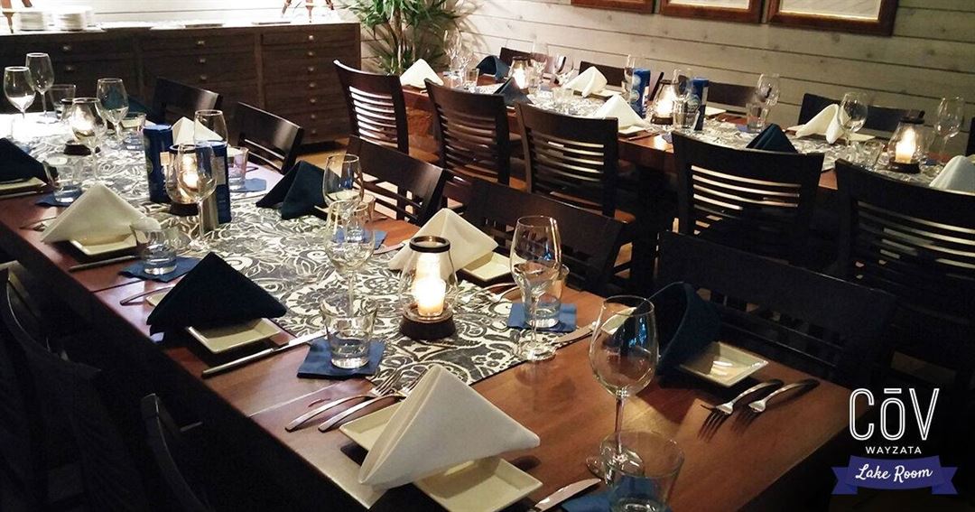 The Lake Room, our beautiful lakeside private dining space, accommodates up to 20 guests for seated meals, and 30+ for standing only receptions. It also includes our lakeside semi-private patio, with cushioned lounge couches and chairs.
