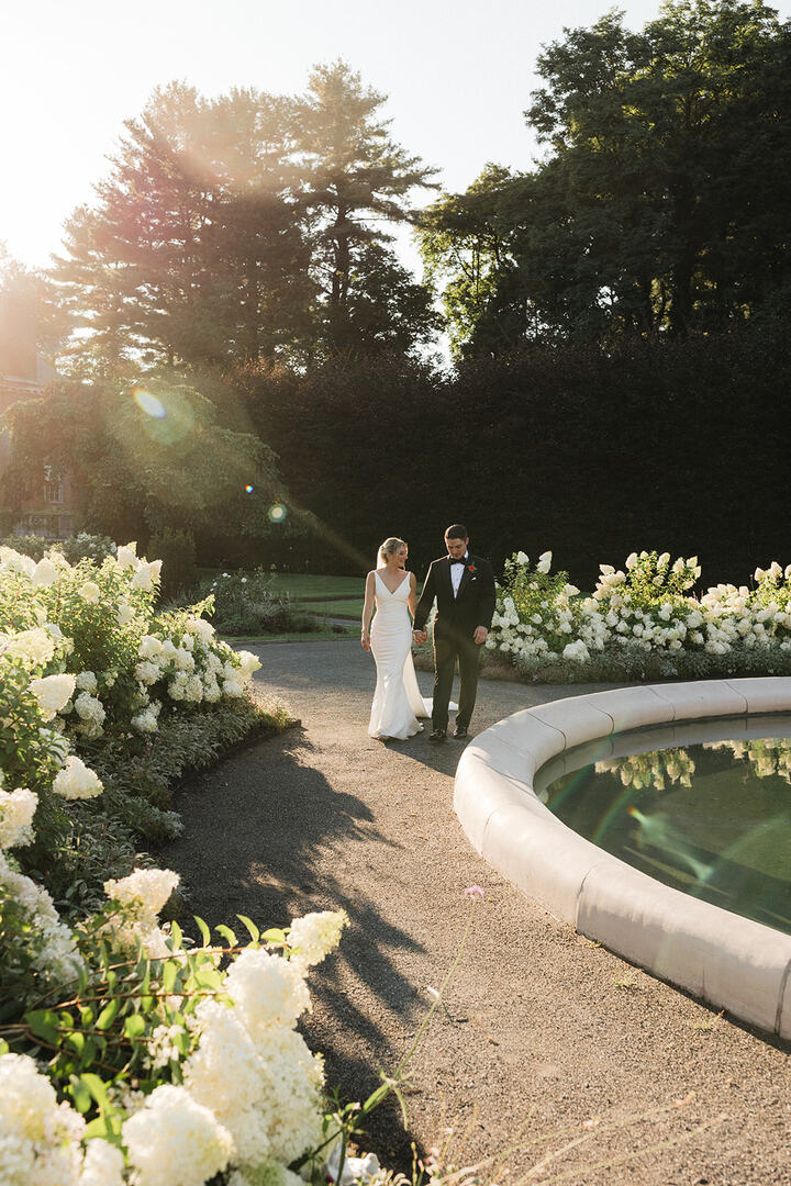 The Garden at Elm Bank is comprised of twelve beautiful gardens and over thirty acres of land which can be used in a variety of ways. Our Italianate Garden provides a breathtaking and one-of-a-kind ceremony backdrop for you and your partner! Our Belvedere Cocktail Space encourages your guests to wander and explore our incredible property while being expertly taken care of by our catering partners.