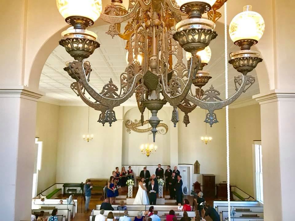 We're thrilled to share our historic Meetinghouse by the seaside, the perfect spot for a "happily ever after." The Meetinghouse, built in 1862 and on the National Register of Historical Places, is a beautiful light-filled space in the Gothic Revival style with historic original features, including the nineteenth-century chandelier, vintage pump organ, and beautiful wood floors.
