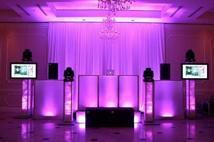 All our wedding packages include ceremony and cocktail reception sound systems at NO CHARGE, a dedicated MC to host your event, AND no overtime. Party all night, we'll never charge overtime. We also have several add-ons to choose from such as Co2 blasters, Dancing on the Cloud effect, intelligent moving lighting, room up-light packages, video elements, cold spark pyro machines, and much more.