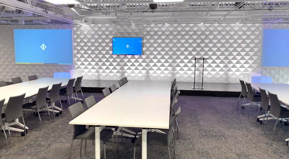 Our versatile business meeting and event venue in West Des Moines offers flexibility for your event. Whether you need to focus over lectures and workshops or add a fun flair to a team lunch or happy hour, West48 is more than your typical Des Moines conference center. People actually love to hang out here! With its modern atmosphere—including a kitchenette, game area and high-tech amenities—West48 is a one-of-a-kind event space in the Des Moines metro.