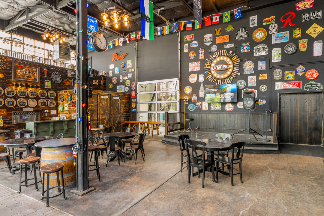 With over 10,000 square feet of indoor and outdoor space, we can accommodate both intimate gatherings and large celebrations. The venue features high ceilings, natural wood accents, a full tap wall with Queen Orchard hard cider and local craft beer, and customizable layout options to fit your event’s unique needs.