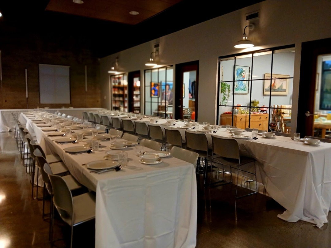 A unique modern-industrial event space. The mid-century vibes resonate throughout the building, creating a perfect gathering space. With a capacity for 100 people, we have plenty of space to comfortably accommodate your group and conduct a special event here. The intimate setting of Retrowe allows you to have seated dining in our open hall that resembles a street scene from the 1950s. The custom shades can be open or drawn while you relax under vintage street lighting, creating a hip, urban cocktail party atmosphere. It's quite a unique party room. There is ample seating available, but most folks simply mingle and have a great time with family and friends.