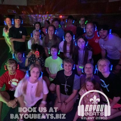 Get the party started by booking Bayou Beats now! From unforgettable weddings to high-energy corporate events, fun-filled birthday parties to festive holiday gatherings, we bring the beat to any occasion. Whether you're planning wedding entertainment, school dances, fundraisers, graduation parties, church events, family reunions, retirement parties, or anniversary celebrations, we'll provide the perfect soundtrack for your special day. Let us turn your theme parties, community events, fitness classes, festivals, conferences, karaoke nights, country club events, picnics, block parties, and proms into a silent disco extravaganza. Join the silent party revolution and book us today for an experience your guests will
