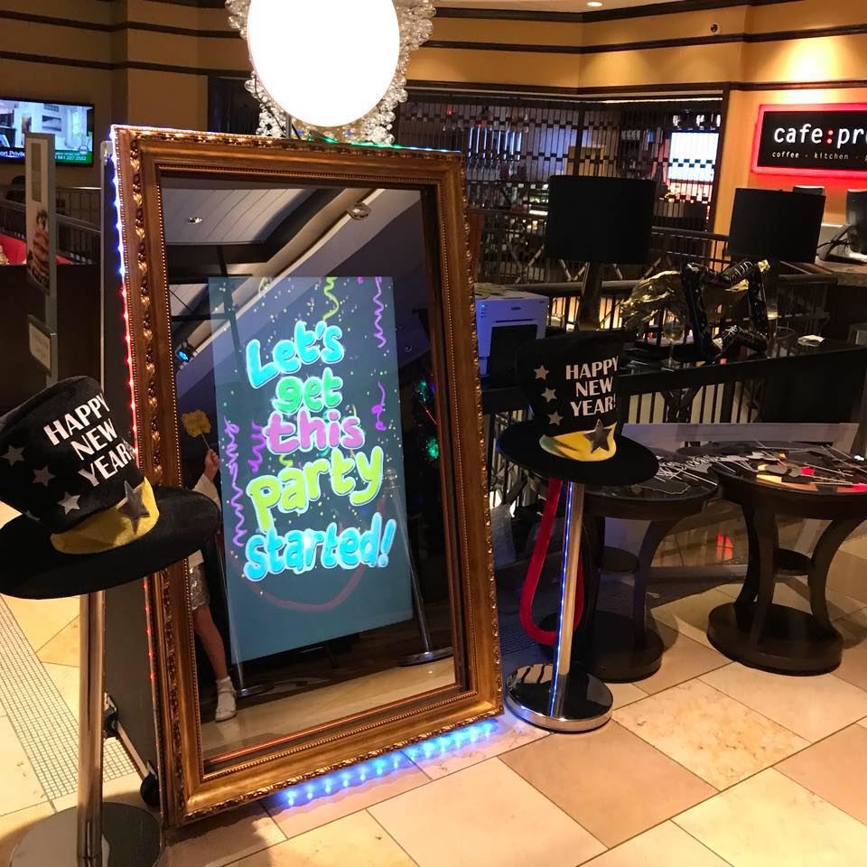 Check our new Mirror Me Photo Booth! It is a huge hit with guests of all ages and is sure to create a lifetime of memories. All rentals include 100s of photo options, interactive themes, unique props, an attendant and unlimited photos which can be personalized at no additional charge just for you.