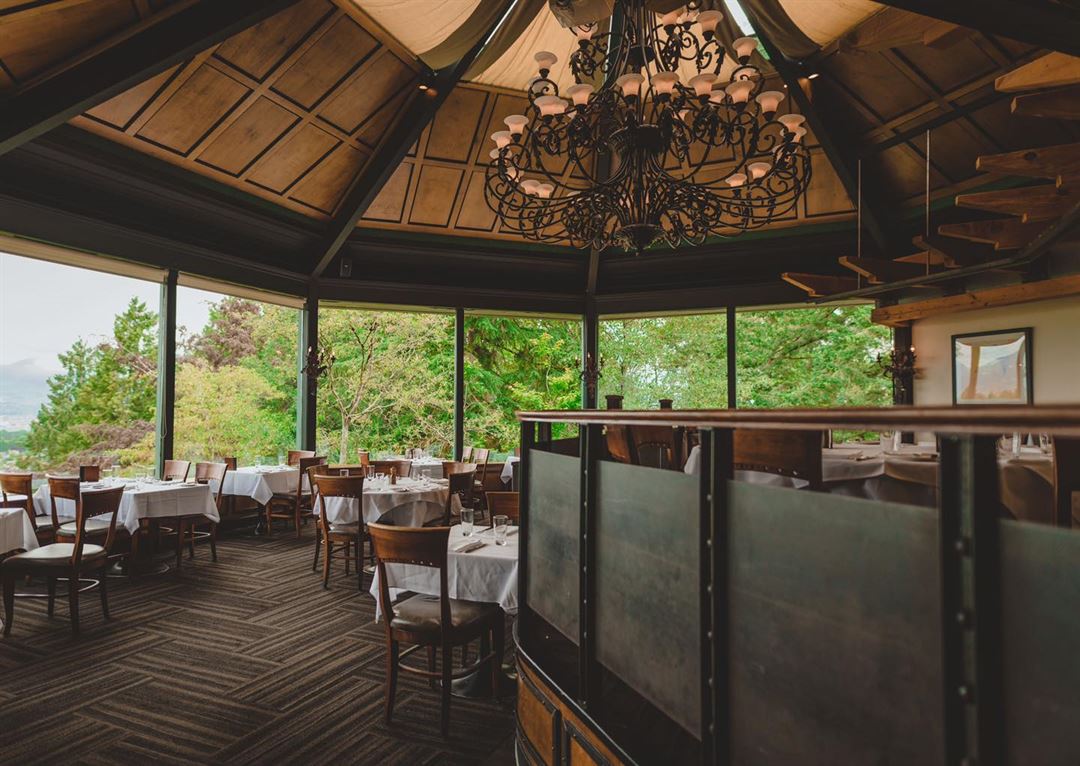Poised at the peak of Queen Elizabeth Park, this glass-wrapped restaurant offers stunning views of Vancouver's city skyline.
