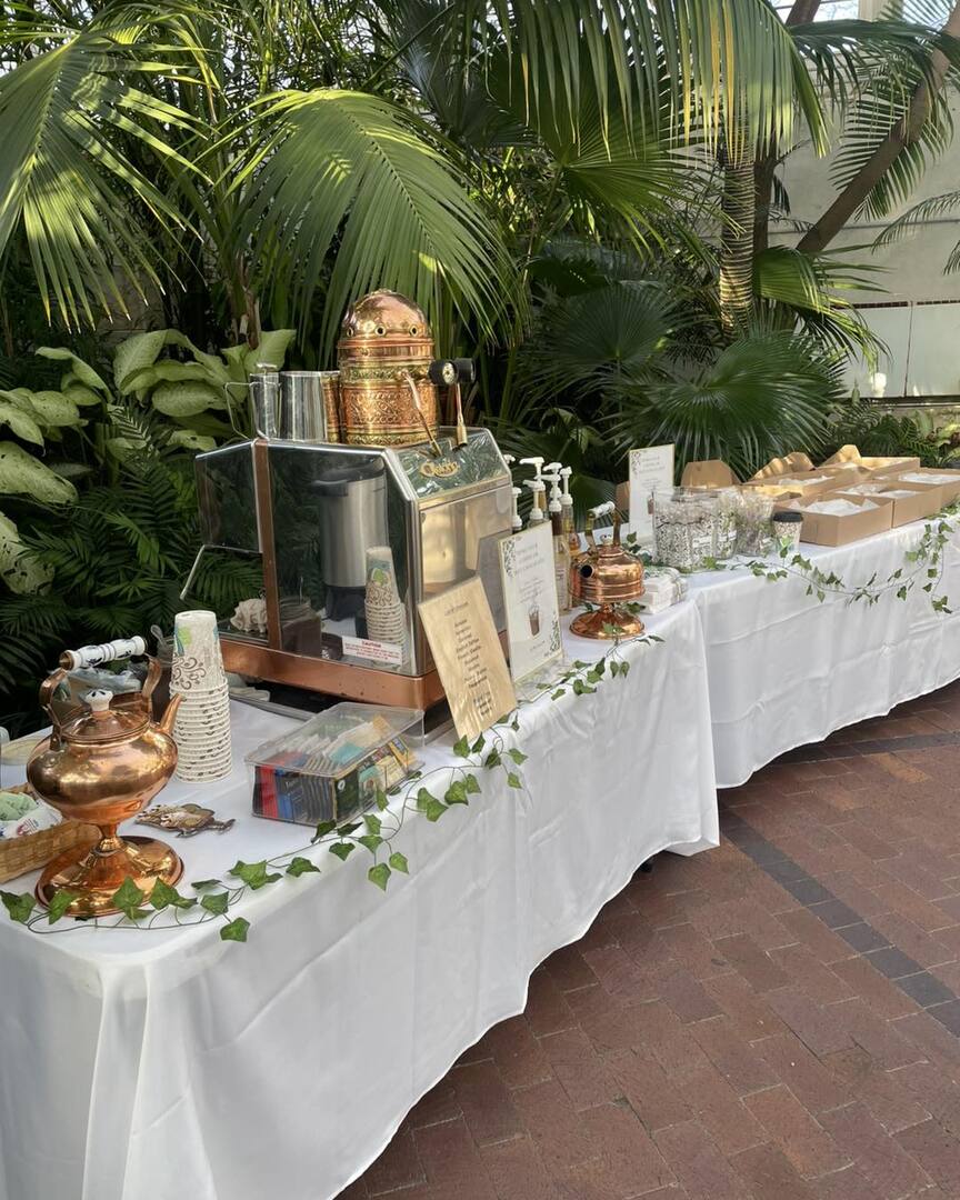 Latte' 2 a Tea is not a brick and mortar coffee shop or a chain. We are not a coffee truck. We setup inside a venue so your guests are not standing out in the elements of snow, rain, wind or heat. We are a unique beverage catering concept, sometimes imitated, but never equaled. We work with all major catering companies, corporate offices and venues, adding an affordable touch of class for your guests to experience. Much less than an alcohol bar.