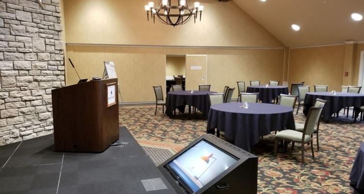 • Large event space with a built-in raised stage area ideal for speeches, presentations and panel discussions
