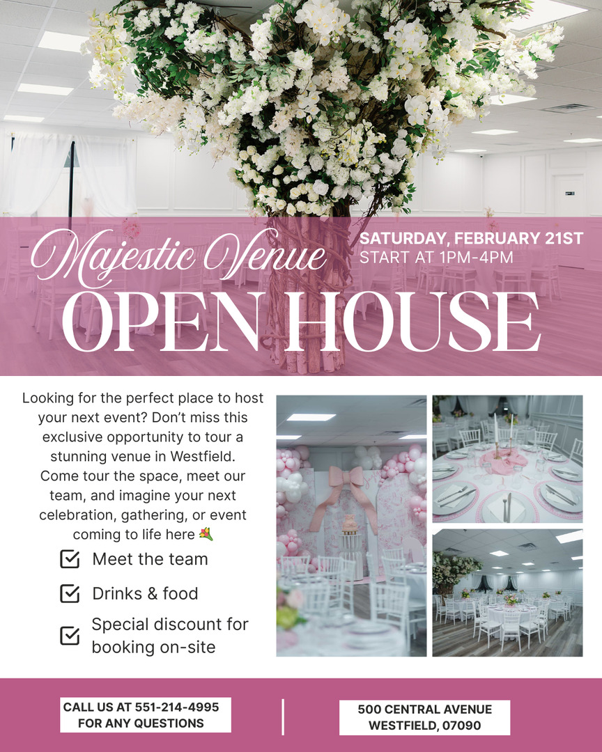 Majestic by Victoria's Cake is a brand new luxurious French venue located in Westfield, NJ. The magnificent 1600-square-foot white room will be the perfect canvas to make every event memorable!