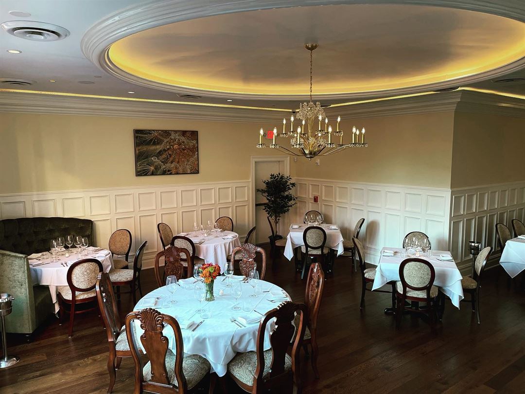 The back dining room is an elegant extension of Gabriele’s main dining room. Natural sunlight and a high ceiling with a magnificent chandelier hover over the room’s luxurious furnishings. Thank you for thinking of us to host your next event; please visit our website for more detailed information, and contact us with any questions!