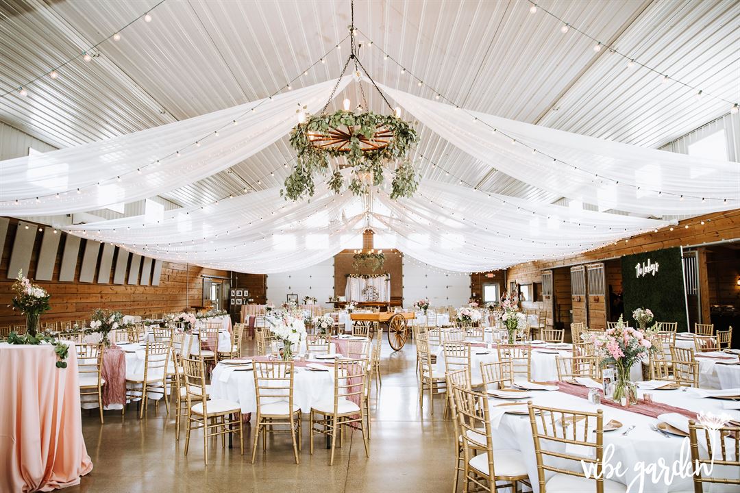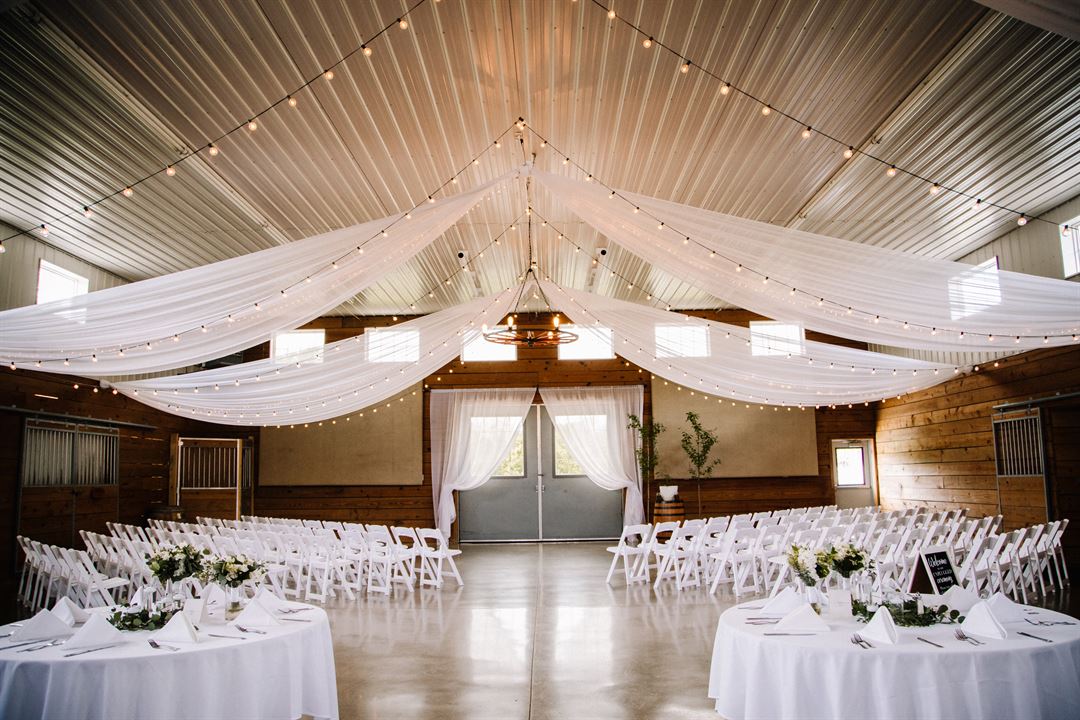 The Stables is a picturesque barn wedding venue located in the heart of the Whitehouse, OH. Originally a working stable, this charming property has been lovingly restored to provide a unique and rustic backdrop for weddings and other special events. With the bistro lighting and chiffon drapery, The Stables offers an rustic yet, modern and elegant atmosphere that is perfect for couples looking for a memorable and intimate wedding experience. Surrounded by lush green fields, a wildflower garden, and hydrangea bushes, this venue provides a stunning setting for outdoor ceremonies and photographs. Whether you're planning a small and intimate affair or a grand celebration, The Stables offers a truly unforgettable wedding experience.