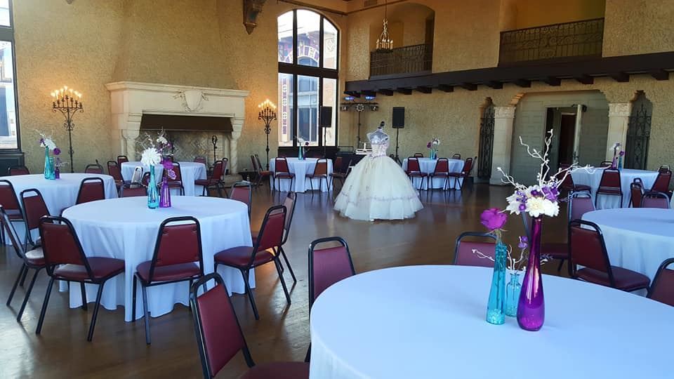 This hidden jewel provides a unique location to hold your special event such as a wedding, reception, holiday party, birthday party, business meeting, etc. This space is lovely with simple or elaborate decorations. The Hamilton Ballroom can accommodate 100 - 125 guests for a sit-down function such as a dinner party.