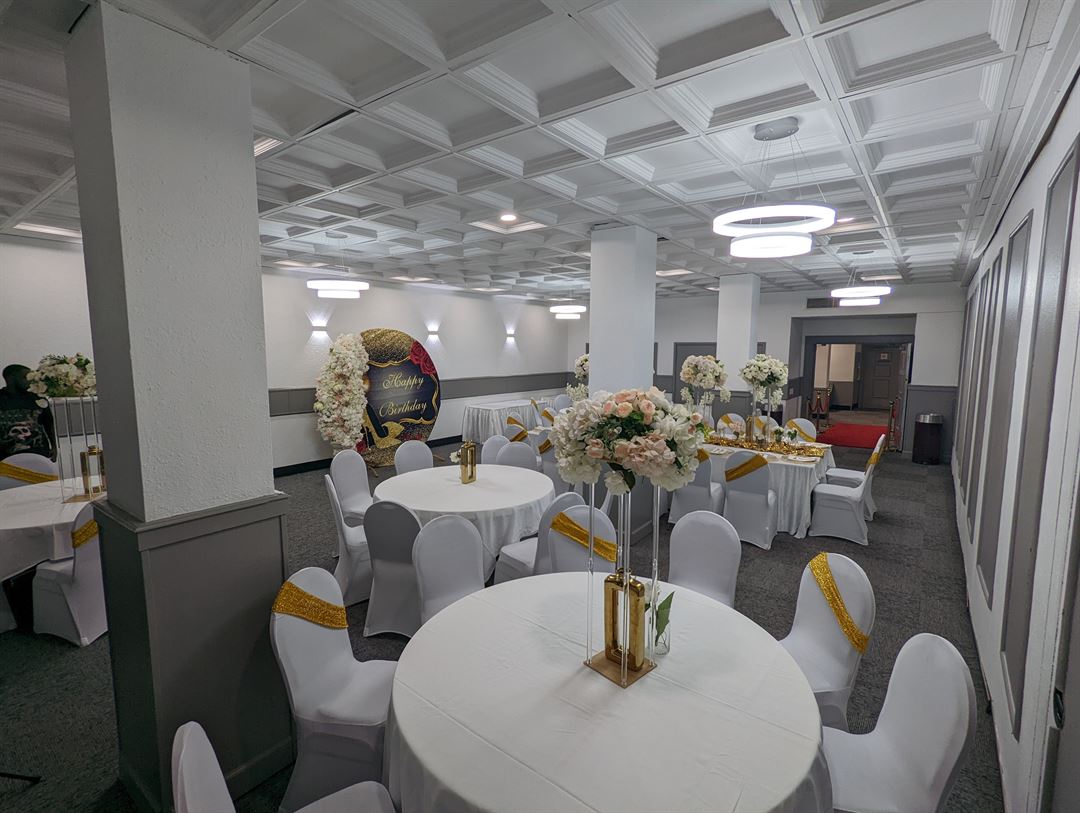The Red Roof Plus is able to host meetings, corporate events, and social events. The Lower Level Hall can comfortably accommodate up to 100 guests theater-style, or 96 for a sit-down banquet.