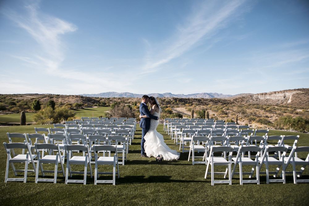 Wickenburg Ranch Golf and Social Club is a full-service wedding venue and golf course located in Wickenburg, Arizona, among a picturesque desert landscape. The venue offers panoramic views of the Bradshaw Mountains, Vulture Peak, and the championship golf course. Wickenburg hosts wedding ceremonies and receptions within this unique setting that exudes rustic charm and modern-day amenities, paired with exceptional cuisine, all at affordable prices.