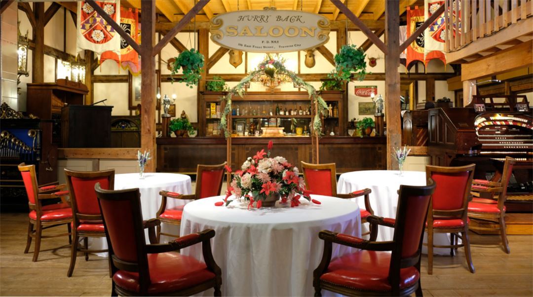 Looking for a unique, exciting yet affordable venue for your special event? The Music House Museum is the Perfect Place for a Unique Wedding. Just 8 miles north and east of downtown Traverse City Michigan, the Music House Museum is a charming 100 year-old dairy barn that now houses a one-of-a-kind collection of rare antique automated musical instruments. All of the fascinating instruments play a huge array of music and are tastefully displayed in turn-of-the-century settings. Filled to the rafters with a 12-rank 1917 pipe organ and a huge 1922 hand-carved Belgian dance organ stretching the width of the balcony, the Museum creates a beautiful atmosphere of nostalgia of a by-gone era. Your group can mingle in the Hurry Back Saloon with its long Mahogany bar, Italian crystal chandelier and working orchestrions and nickelodeons; wander through the Acme General Store with its pot-bellied stove, shelves of old-fashioned remedies, tools and food stuffs, and hear the rare Regina Corona Music Box; and visit the gallery of juke boxes, phonographs, early televisions and radios. The Music House Museum can comfortably seat evening groups of 60-80 guests in the main museum with a theatre-style capacity of 80 and standing capacity of 125. Outside events are welcomed, utilizing tents, portable restrooms, with ample parking.