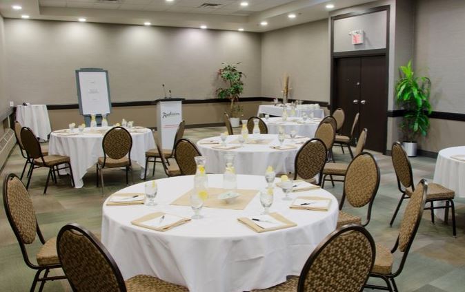 Host meetings for up to 20 people in the sophisticated Executive Boardroom, or plan a one-of-a-kind reception for up to 435 guests in Ambassador Banquet Room A. With certified wedding planners and certified hospitality sales professionals on staff, the Radisson has the tools you need to organize a successful event.
