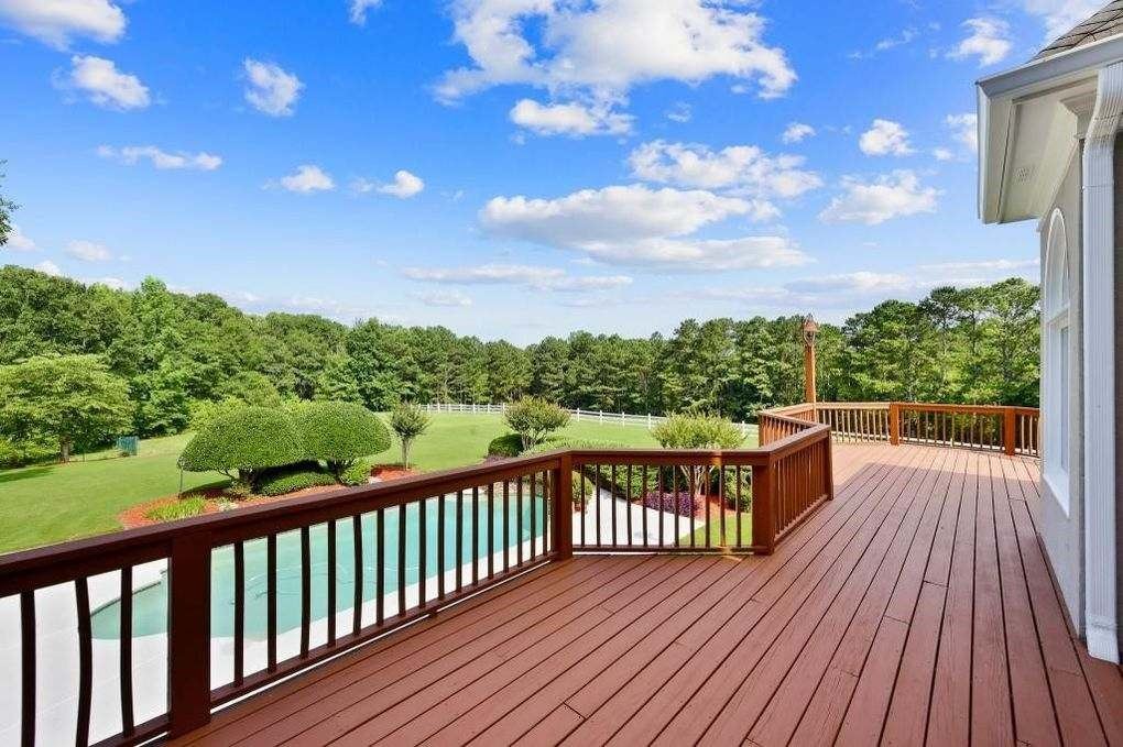 The house also has a pool, and a deck overlooking the beautiful grounds. There are also outdoor games available, such as cornhole, and badminton. Guests can also enjoy access to the nature trails, which are perfect for hiking, biking, or horseback riding.