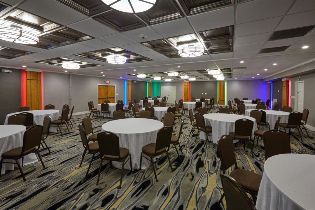 The hotel features a ballroom that is perfect for weddings, business meetings, and other special events, with its modern chandeliers and up-scale décor. For added convenience, the hotel also has a full-service restaurant and bar as well as state-of-the-art A/V equipment, Wi-Fi access, and experienced event coordinators on-site to make your event a successful one.