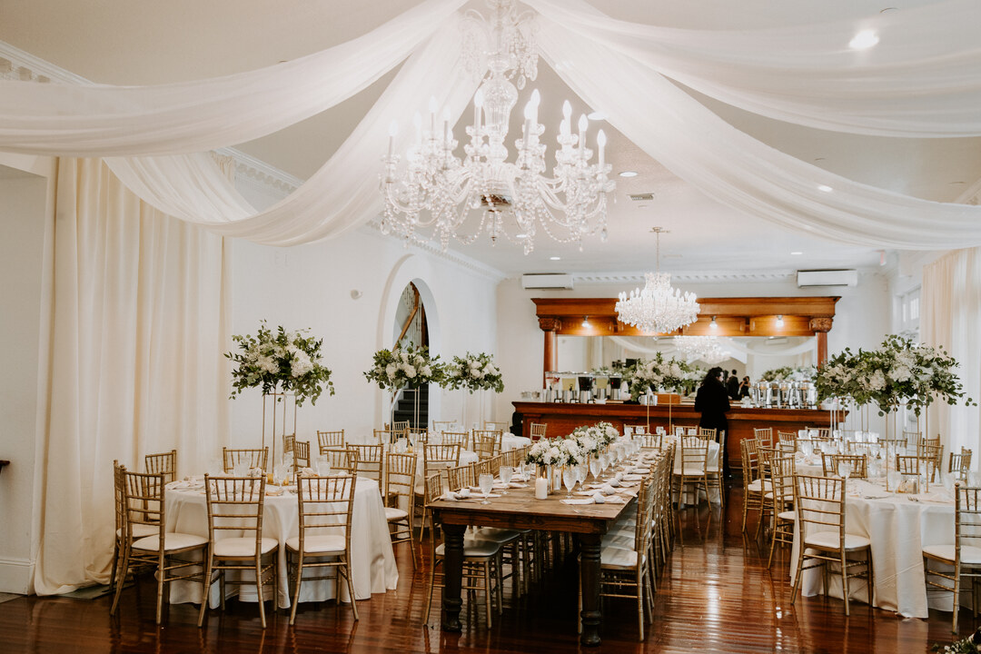 Originally built as a 20,543 square foot private residence (in 2001), the estate was purchased in 2014 and converted into an event venue with a Grande Ballroom, large enough to host up to 160 of your peeps, two VIP/getting ready spaces, outdoor ceremony + cocktail space plus a few enhancements to make planning a breeze!