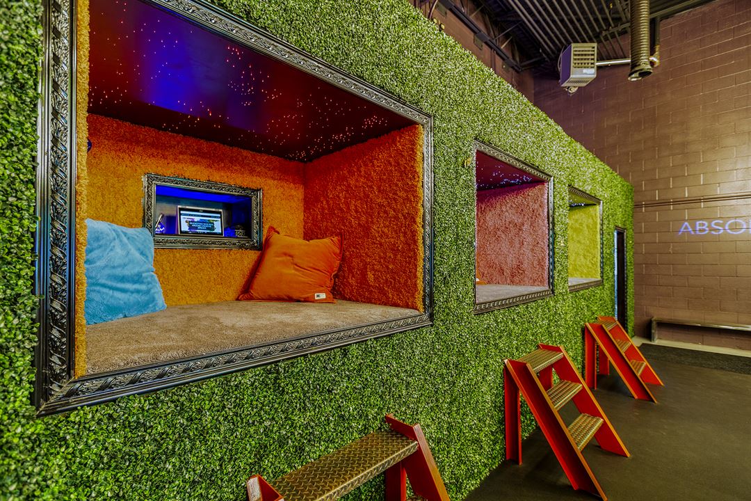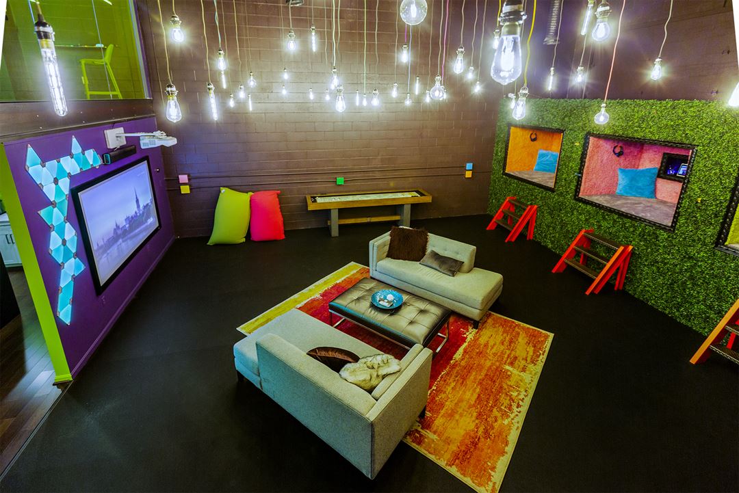 The idea was to provide a mental break from the typical gray work environment and to promote creativity where it is typically not found. The benefit to a corporate group lasts far beyond the time that was spent in our space; improved morale, better communication and ultimately increased productivity. Whether utilized for a typical offsite, brainstorming session, team building, day retreat, etc. - our spaces are the ideal environment for any group that's looking to really mix things up and try something new!