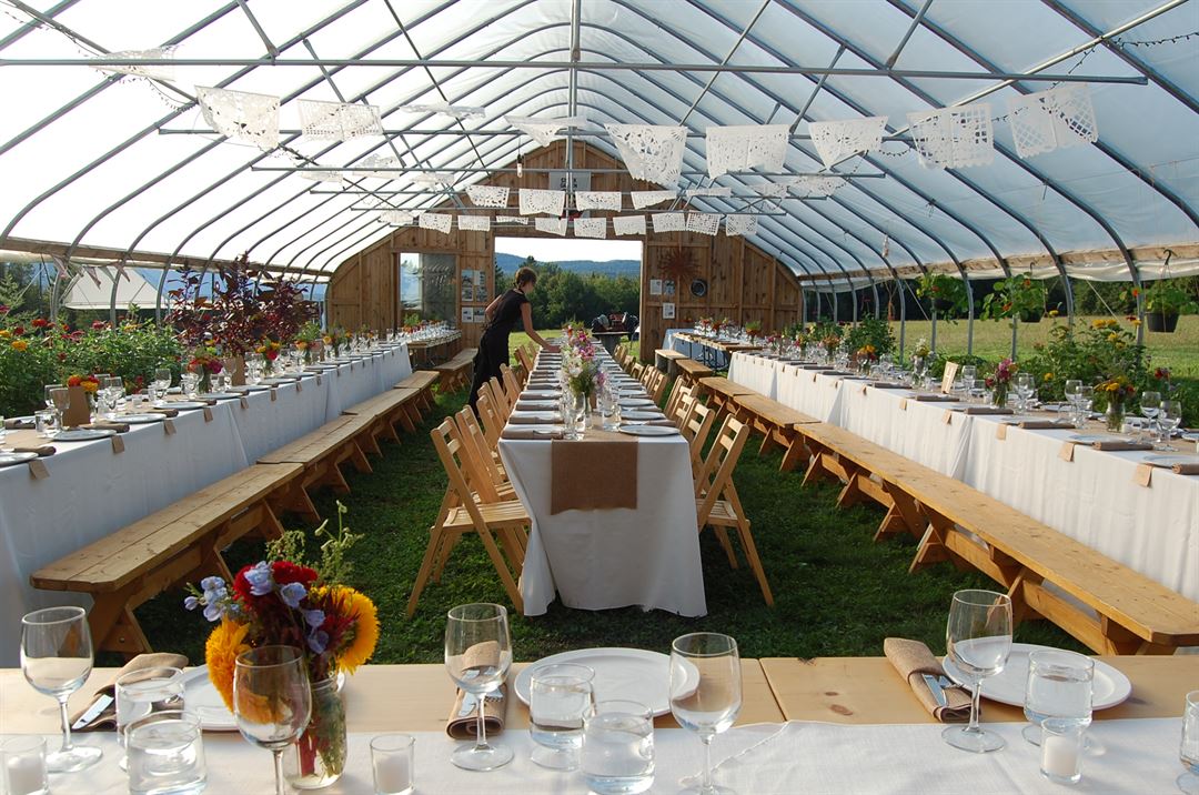 Our picturesque farm is available to rent for wedding ceremonies, reception dinners, reunions, music festivals and other special occasions. A large open field, event greenhouse, thriving gardens, and amazing friendly staff create a stunning atmosphere for your private party.