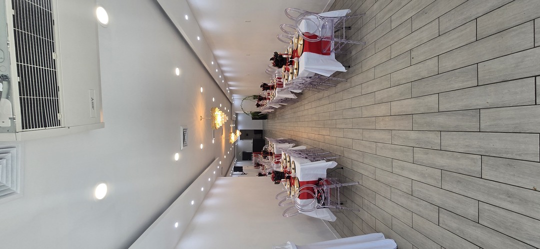 The open layout provides endless possibilities for event design. The tables and chairs can be set up in any configuration—whether you're planning a formal dinner, a relaxed social event, a pop-up shop, or a workshop. The buffet area is conveniently positioned to keep food and drink service organized without interrupting the main activities. This versatility ensures the space can be transformed to match your theme, aesthetic, or event goals.
