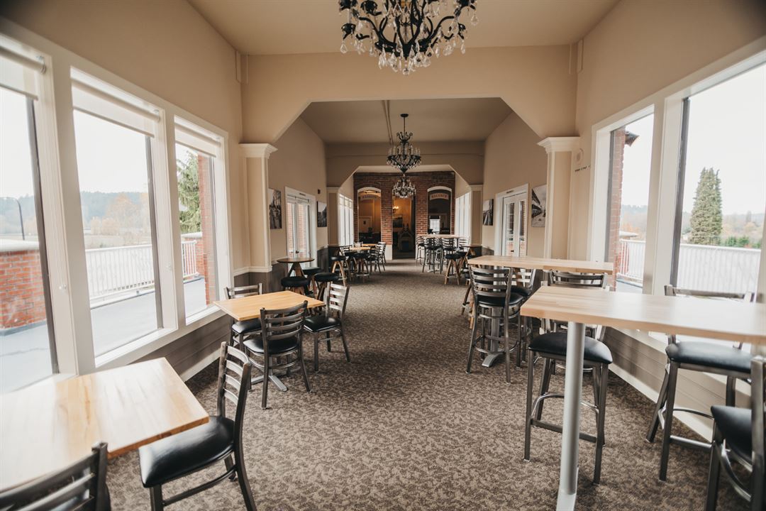 Maryhill occupies the grand ballroom and upper floor, along with a full commercial kitchen. Visitors are able to enjoy Maryhill's wide selection of Washington wines from both inside the lovingly restored building and outside among the beautiful gardens and outdoor balconies.