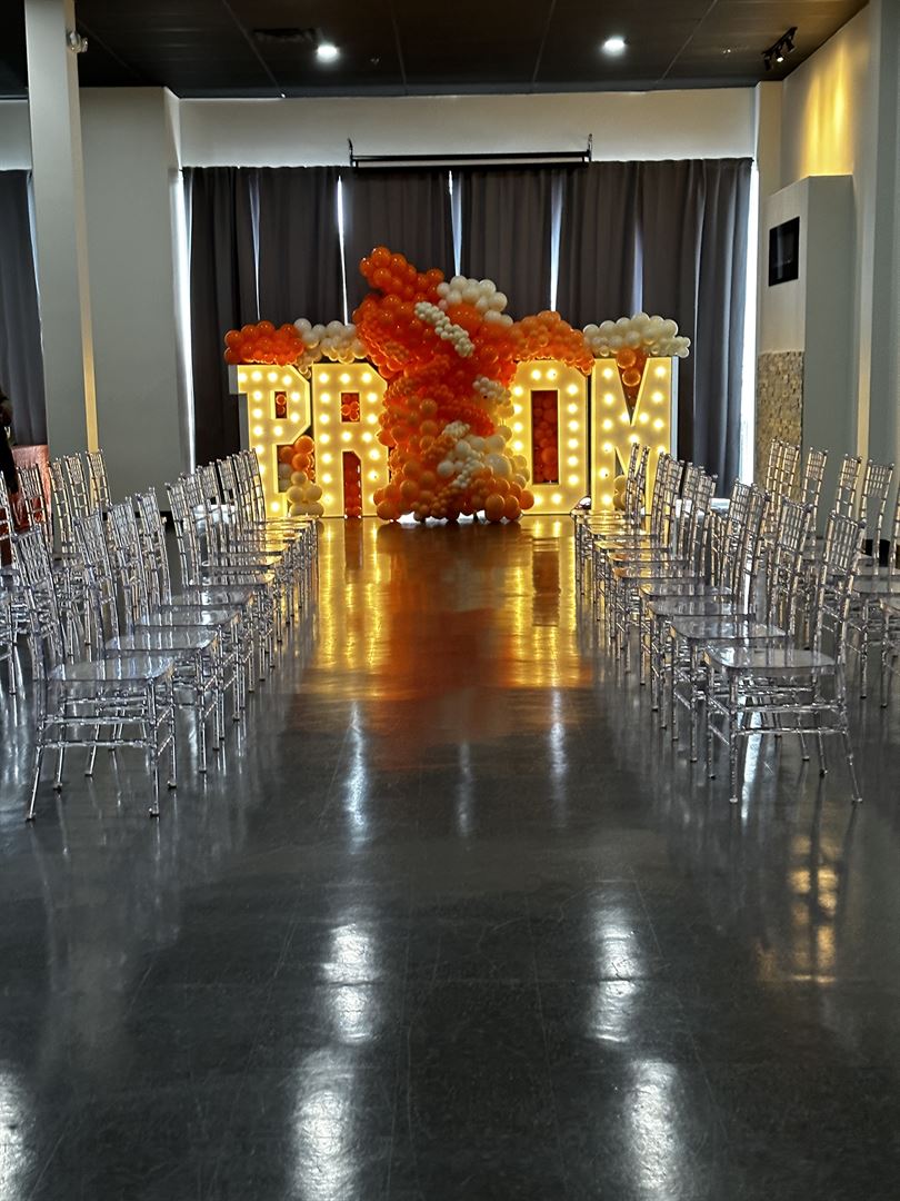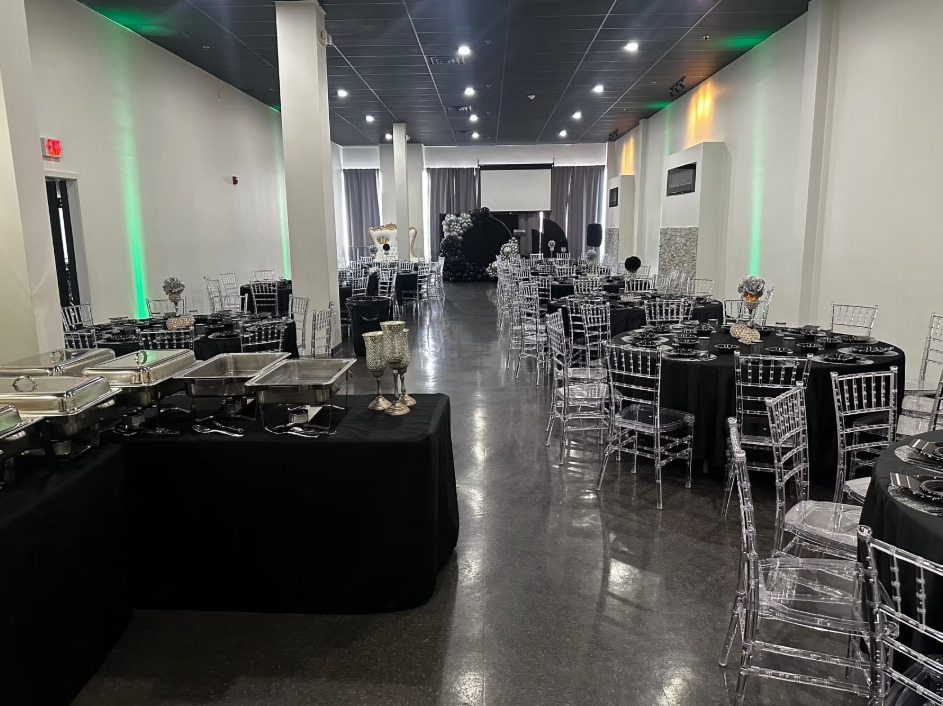Our venue is an 3,400 sq. ft which includes a 7 hour rental ( 2 hour set up, 1 hour break down, 4 hours for your actual event). Your rental will include 72' round tables, Ghost Chiavari Chairs, Kitchenette( Countertop, microwave, sink, refrigerator) , 2 bathrooms, and Bar & Lounge area. Outside catering is allowed, as well as vendors, all companies will need to have insurance. We are open to all types of events such as Parties, Birthday, Cooperate Events, Baby showers, Bridal Showers, Weddings & Receptions and so much more. You can rent additional in house items from us such as a 360 Photo Booth, Selfie Photo Booth, Double Love Seat Throne Chair, Champagne- Wine Wall, Red Carpet, Cocktail Tables etc.
