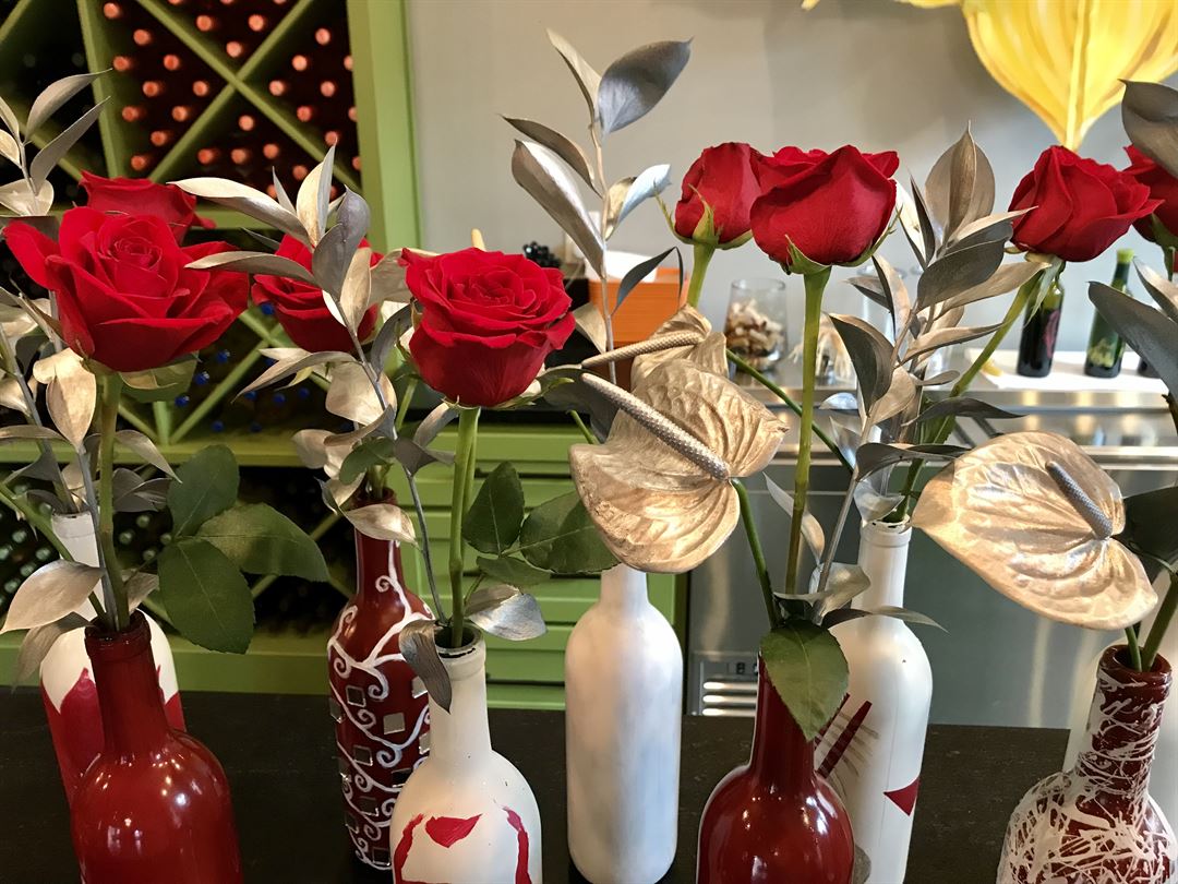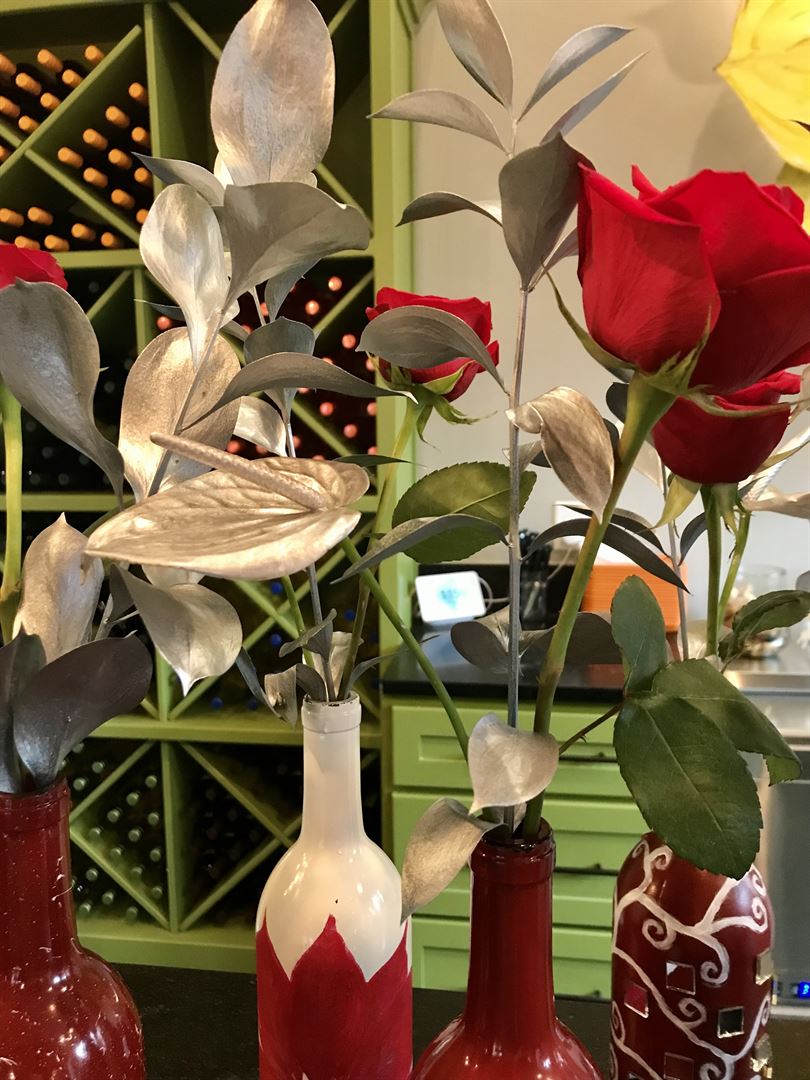 Her work can be commissioned, and typically takes 3 weeks for both product and production to be completed. Each stem is hand selected at market, and hand painted according to the client's vision.