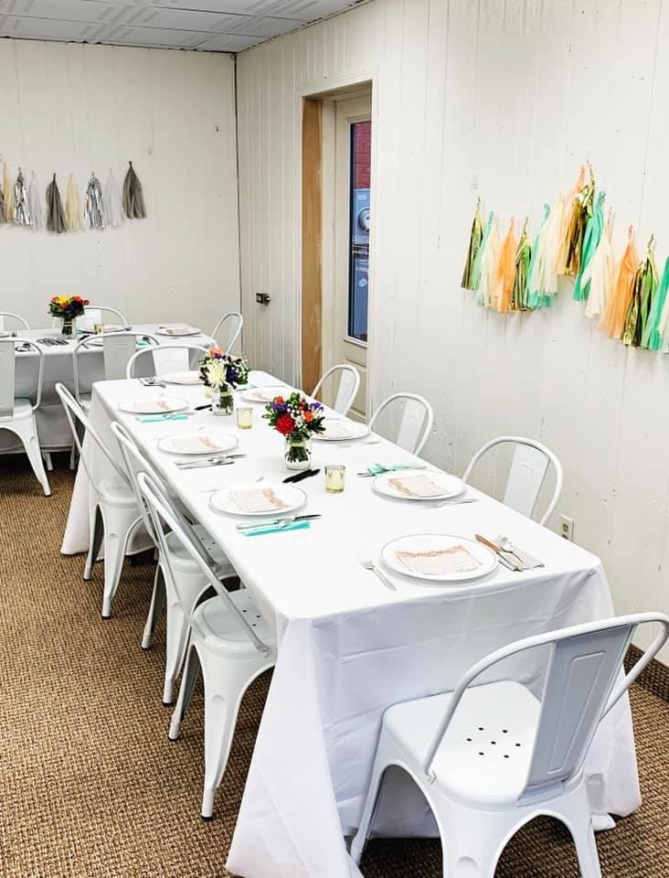 Get Togethers Zeeland is a bright and cheery event space, seating 40. The space is great for Birthday Parties, Anniversary Parties, Retirement Parties, Baby Showers, Bridal Showers, Pop Up Sales, Photography and more!