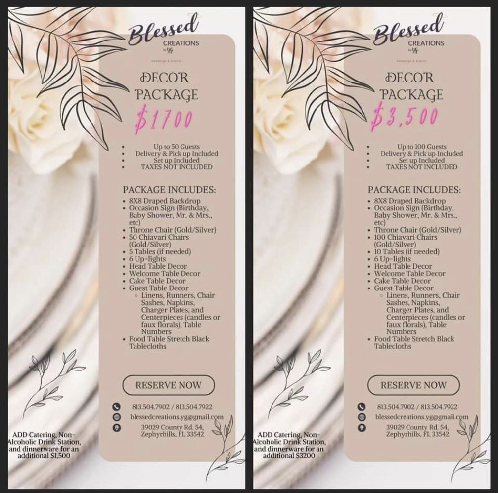 This Full Service Reception decor package is specifically tailored to the client who is looking to have minimal involvement